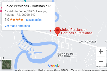 EXCELENTE Com base em 5 avaliações Publicado em Danieli NejeliskiTrustindex verifica se a fonte original da avaliação é Google. Ótimo atendimento, os prazos foram cumpridos e a qualidade do produto é muito boa.Publicado em Nelson OssanesTrustindex verifica se a fonte original da avaliação é Google. Excelente atendimentoPublicado em Gabriel FonsecaTrustindex verifica se a fonte original da avaliação é Google. Empresa referência no ramo de cortinas e persianas em pelotas e região sul. Possui atendimento personalizado, produtos de excelente qualidade e ótimos preços. Vale a pena conferir e fazer um orçamento.